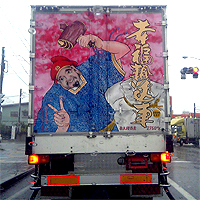 本日、雨の中多賀城の漫画喫茶に行った帰りに、一度見たら忘れられないようなトラックを発見しました!そのトラックには、「幸福親送車」と書いてあり、水戸ナンバーでした。