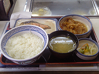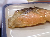 ガマは、牛すき焼き鍋定食と豚鮭定食がお気に入りで、本日は「豚鮭定食」を注文しました。