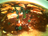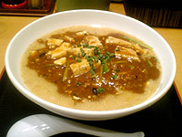 まずは、マーボーとからめながらスープを一口!確かにピリ辛とメニューにも書いてましたが、ピリリッとして美味い!!