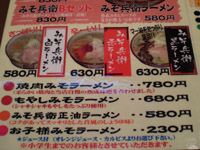 メニューを見ると、さすが「みそ兵衛」だけにみそ味のラーメンづくし!!唯一正油ラーメンが1種類だけありましたよ☆