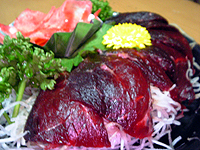 赤身は柔らかく、ベーコンはクジラ独特の香りと旨味があって、もう何も言うことがないくらいです。