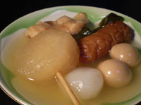 大根、ごぼう巻き、玉こんにゃく、竹輪、昆布、うずら卵、醤油、発酵調味料、砂糖、食塩、仙台味噌エキス、風味調味料(かつお)調味料(アミノ酸)(原材料の一部に大豆・小麦含む)