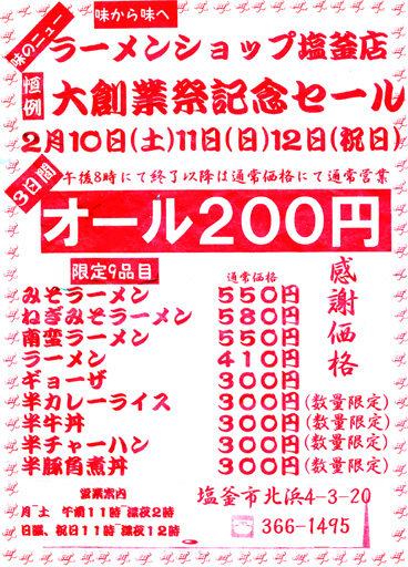 なんと言っても、この三連休中はラーメンなどが200円!!!!!