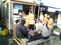 車を降りてお店に行くと、気の良さそうなおじさんやおばさんが、「飲んでいってけさいん♪」と無料でカニ汁を振る舞ってくれます。カニのだしが効いた味噌汁は、なんかホッとします。(寒い日にはHOTします!)