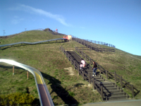 さっそく降りて、公園へ向かうと、子供用の遊具が置いてある広場が見え、更にはながーーーーーい階段が山の上の方へと伸びていました!