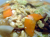 まずカルビクッパのボリュームに驚きました!とき卵やカルビ、ニンジン、白菜、大根などなど、具が多い!そしてスープを飲むと具の味が引き出されていて、メチャメチャ美味い☆☆☆肉も柔らかくて口の中に入れると、全体に旨味が広がります。超満足!!