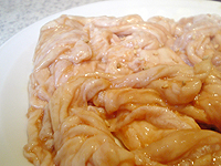 店の前の看板で、本日の日替わりは「豚トロ」でしたが、ホルモン定食の写真を見て、コレしかないと思いました。